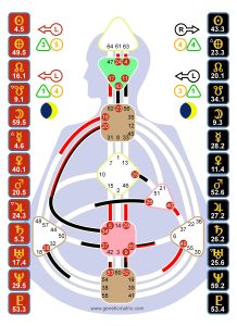 Here’s how it differs from astrology: in Human Design, the planets don’t land in houses. Instead, they activate gates.